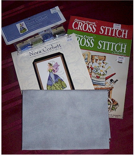 I picked up Nora Corbett’s Maidenhair and bead pack. I love the the way her dress falls into leaves at the bottom. So pretty. The fabric is a a hand dyed Jobelan that caught my eye.. er my hand. It is a stiffer fabric and you know how I like my fabric to be stiff to accommodate my tight stitching. I have to admit, I am getting better at relaxing my stitches. It is 28 ct Stormy Gray and I really like the feel of it. The hand dye is subtle and I know I will find the perfect pattern to stitch on it some day. The other thing I purchased is the recent and last issues of Stoney Creek magazine. I am a magazine freak! I am better than I was a few years ago and don’t buy every one, but I LOVE magazines and have to look at them all. So while flipping through the recent issue I came across this: