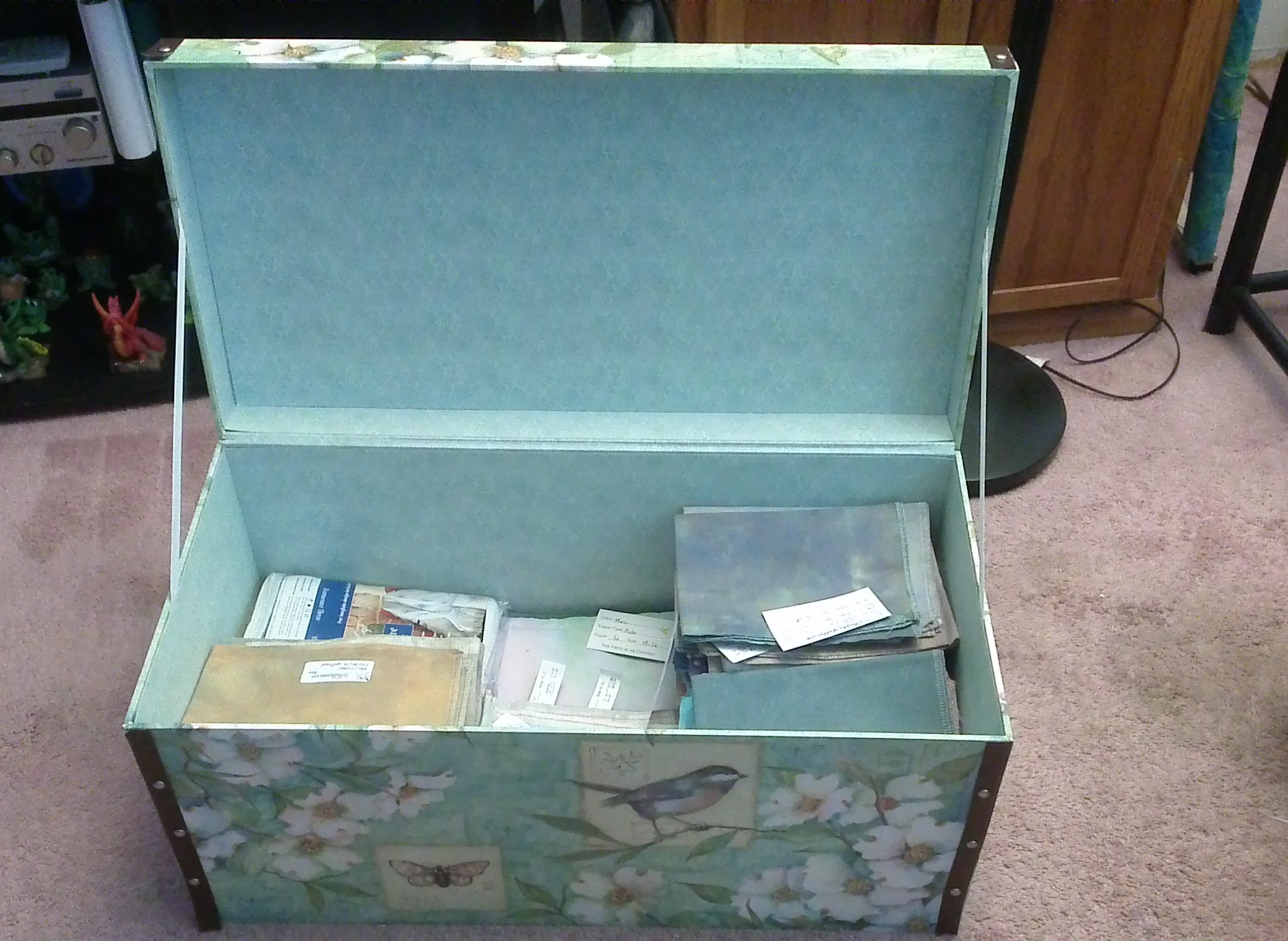 It is a beautiful trunk.  He bought it at Joann Fabrics.  And guess what I put inside??