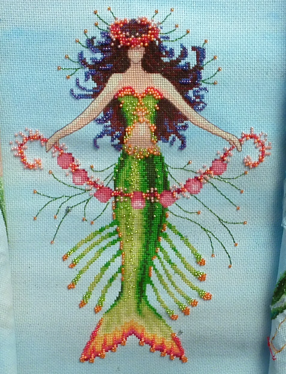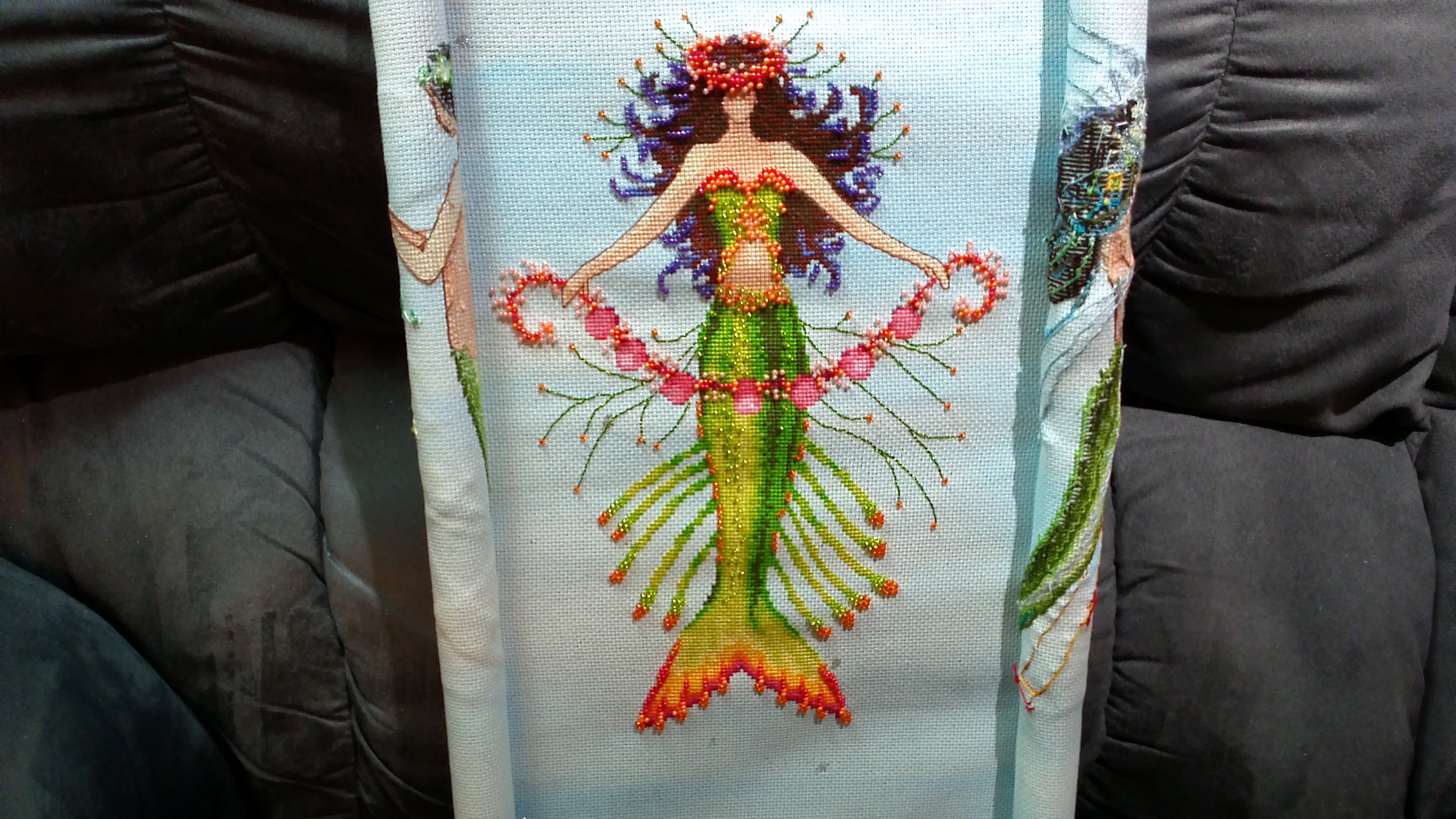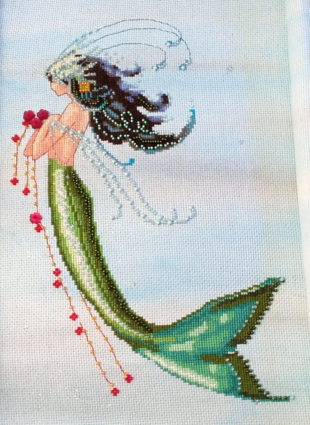 These fun things ended up in my bag from Stitches N Things. The newest Mirabilis pattern, Twin Mermaids and the bead pack. No plans to start this right away, but just had to have it. It’s 2 mermaids! And some threads and a horn book for an upcoming project.
