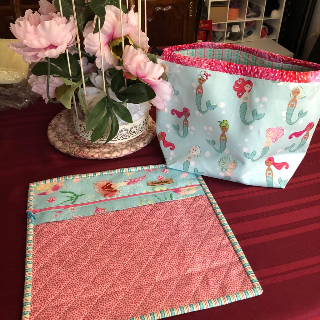 Another mermaid project bag! Squee!! I forgot to get a picture of the back of it. But it has lots of cute mermaids on it. I will have to get a picture for next time. I received my August project bag on Friday. A sweet Summer theme!