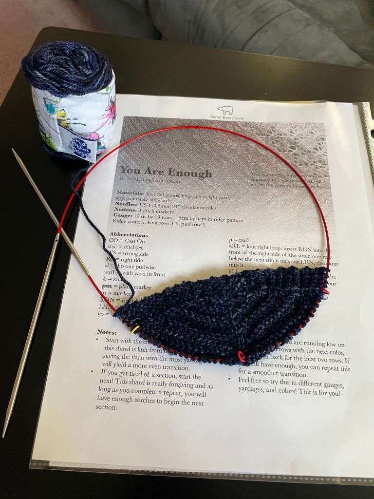 The pattern is You Are Enough by Sarah B. Abram. I met a very sweet gal on Ravelry who reached out to me about something I had placed on my project. So glad she did, as we chatted together throughout and she made some wonderful notes about her project and took some great photos. She was a big help when I had questions and she cheered me on to keep going.