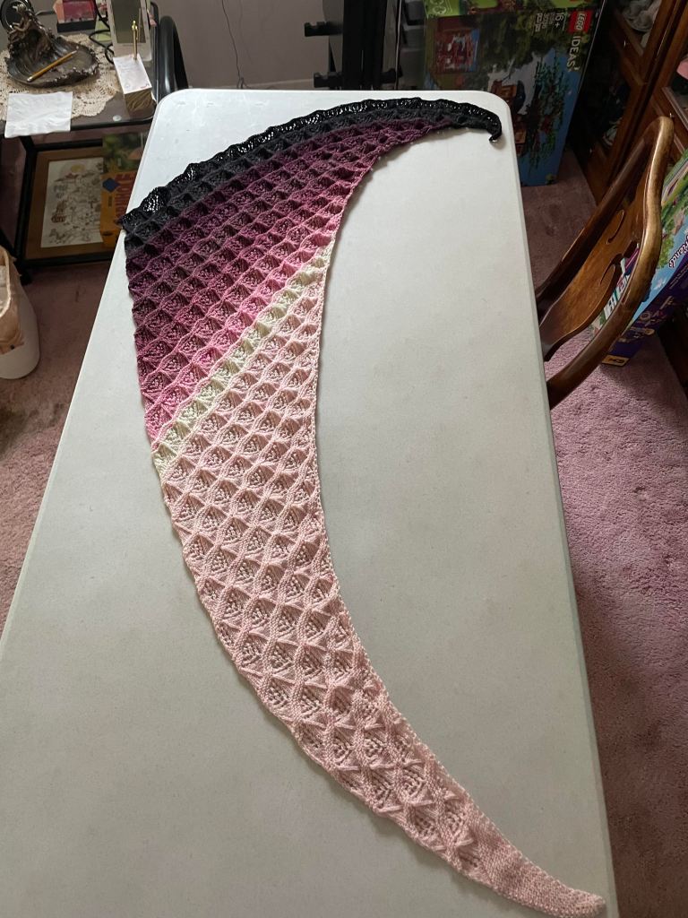 I am actually on the decrease tier now and making half triangles for the top edge.
