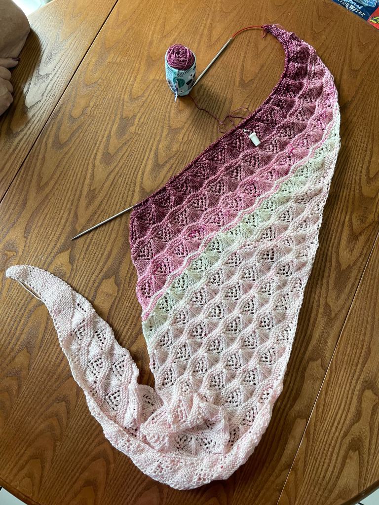 Maybe blocking will give me the size I need. This shawl will also have tassels.
