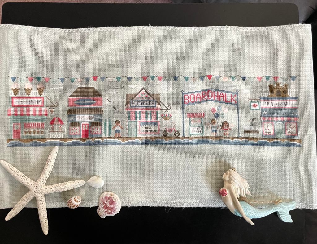 Now for what I have been stitching on. I added the 5th shop on my Beach Boardwalk series.