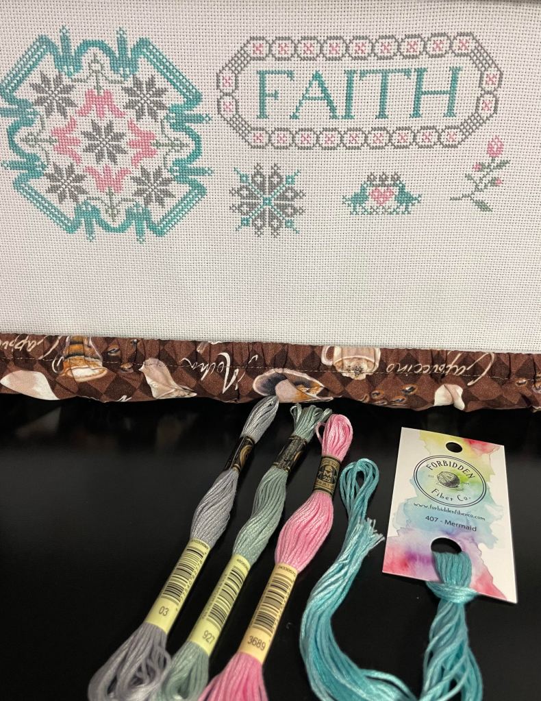 The next piece I picked up was the 2024 MSAL from Fox & Rabbit, Faith Hope Love. This is a FREE SAL so if you want to jump in you can. Once I figured out my color placements, I stitched this section up pretty quickly.