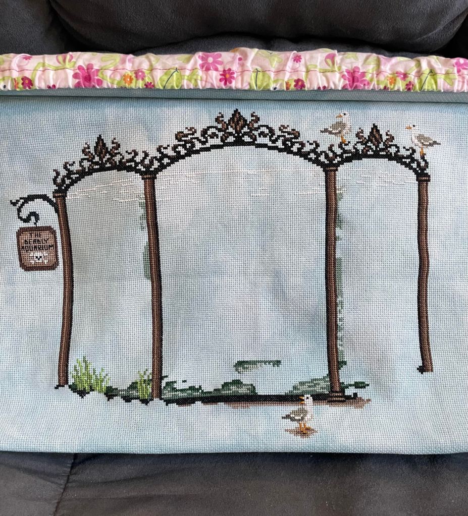 I loved stitching the frame. The Sea Gulls are so cute. The fabric is 16ct Beanstalk (the called for fabric) from Fabric On A Whim and is actually more blue than the photo is showing.