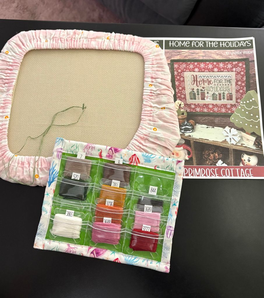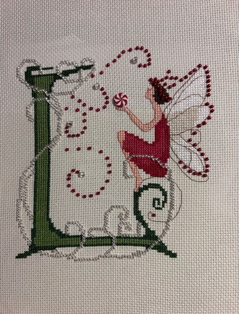All of these letters are being stitched on 16ct Aida Artichoke and I have converted all of the thread and bead colors to Christmas colors. That was quite the process and I definitely applaud anyone who does conversions all of the time.