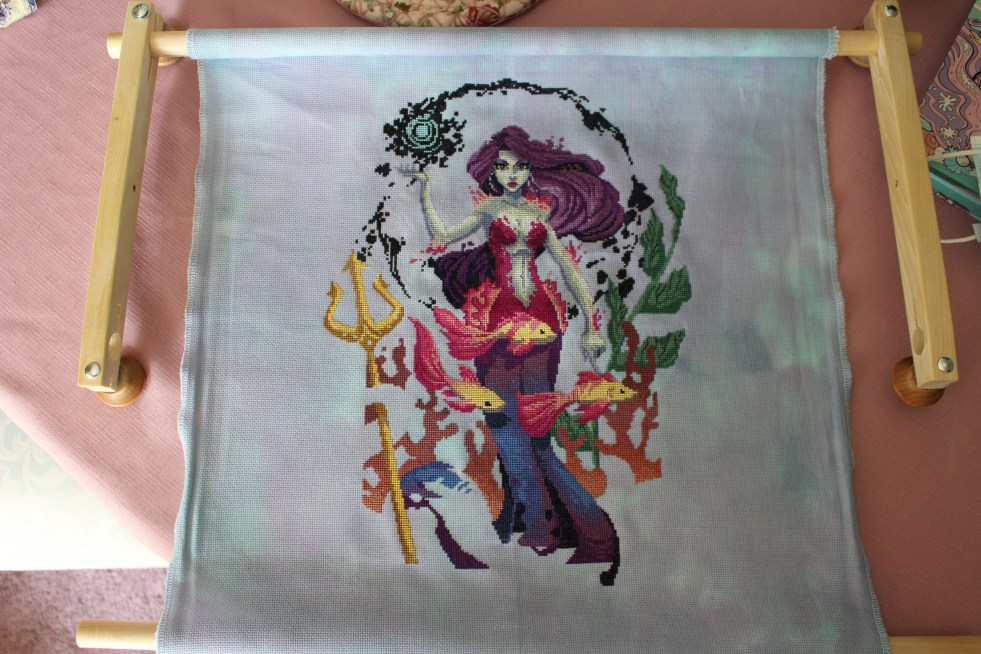 Another project I am working on is The Deadly Aquarium from Lola Crow Cross Stitch.