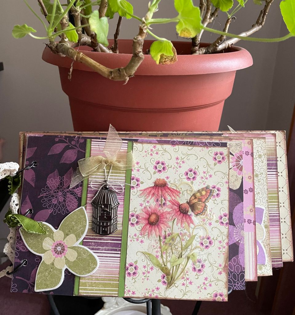 First up is a little memory album that I have tried to finish for several years. The pages have been almost finished but adding photos and journaling has been very hard for me. It is an album of someone that I miss dearly and long to talk to often. The last few months I have been wanting to talk to this person every day. So, I decided to sit down and see if I could finish the album. And I did. It took a lot of tears, a lot of remembering and a lot of emotions, but it is finished. I added photos, journaling and some embellishments and I am happy that I was able to get this finished. It was very therapeutic, too.