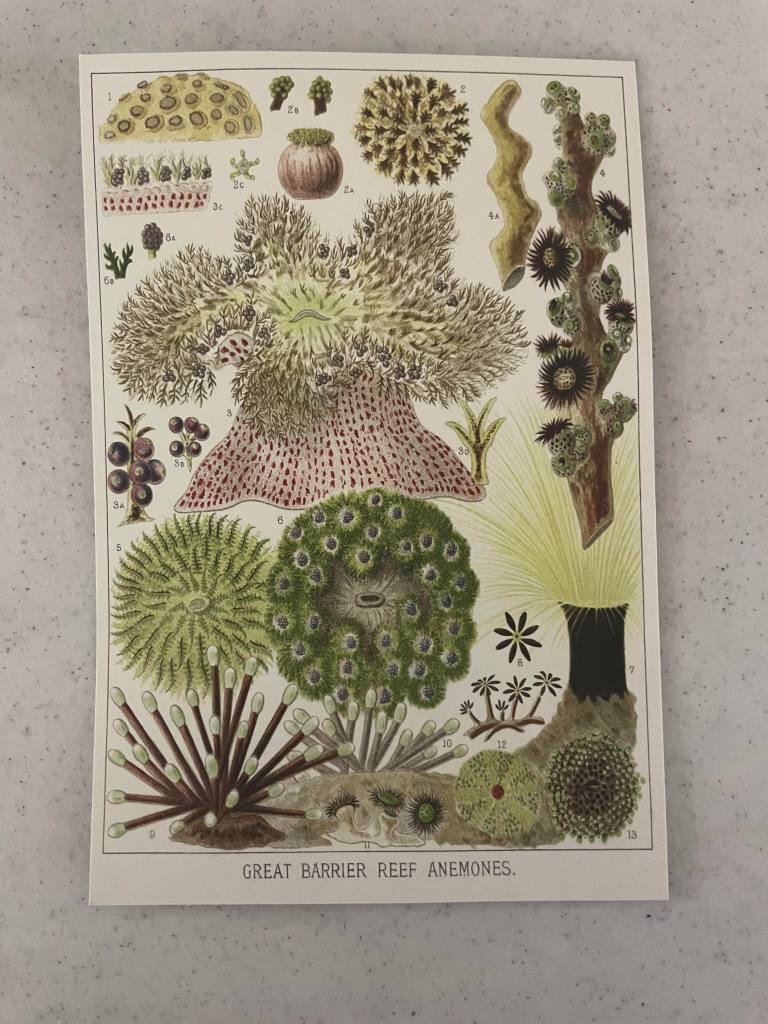I am enjoying this knit and am really looking forward to seeing the color changes. I like knitting with this Mad Hatter Sport yarn. It is soft and knits up nicely. I did find a shop online that had 1 skein left of the January cake and I will show that one in a future post. Oh, I did forget to mention that each month comes with a post card with some beautiful artwork on one side and project tracking information on the other. Here is the February card.