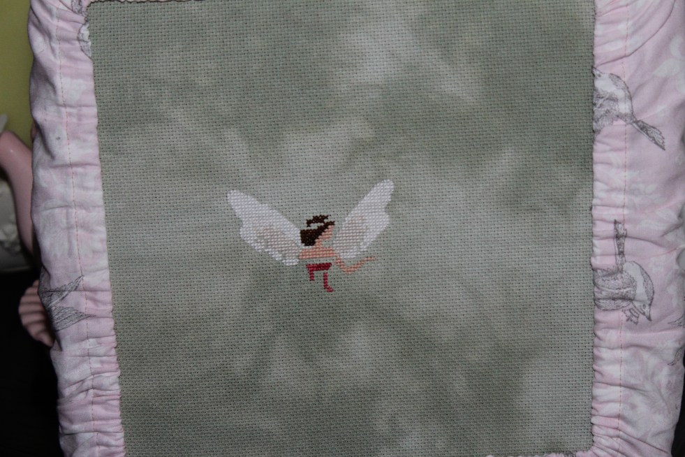 I am still waiting for threads for the Mystery Sampler. My LNS says they are on back-order from the manufacturer, so no telling when I will get them. However, a very sweet gal on the sampler group has offered to send me 3 skeins that she has as she is undecided about her sampler. Stitcher’s are such sweet people ❤ While waiting on threads, I have been working on Ella. Here is where I left her last night: