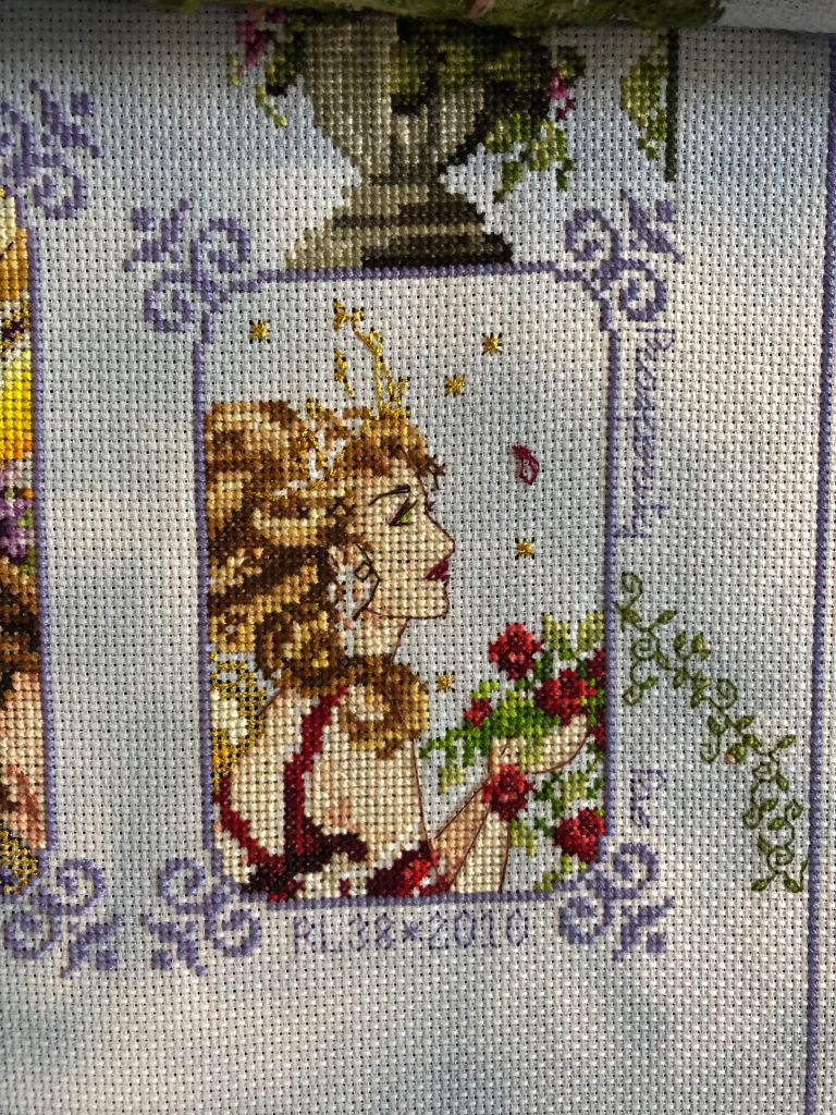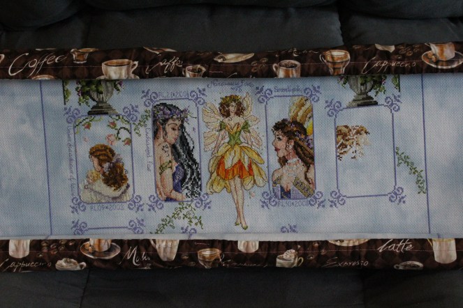 Ahhh. This is so much better! Now I can continue stitching. This is where I am at with Ocean Pearl.
