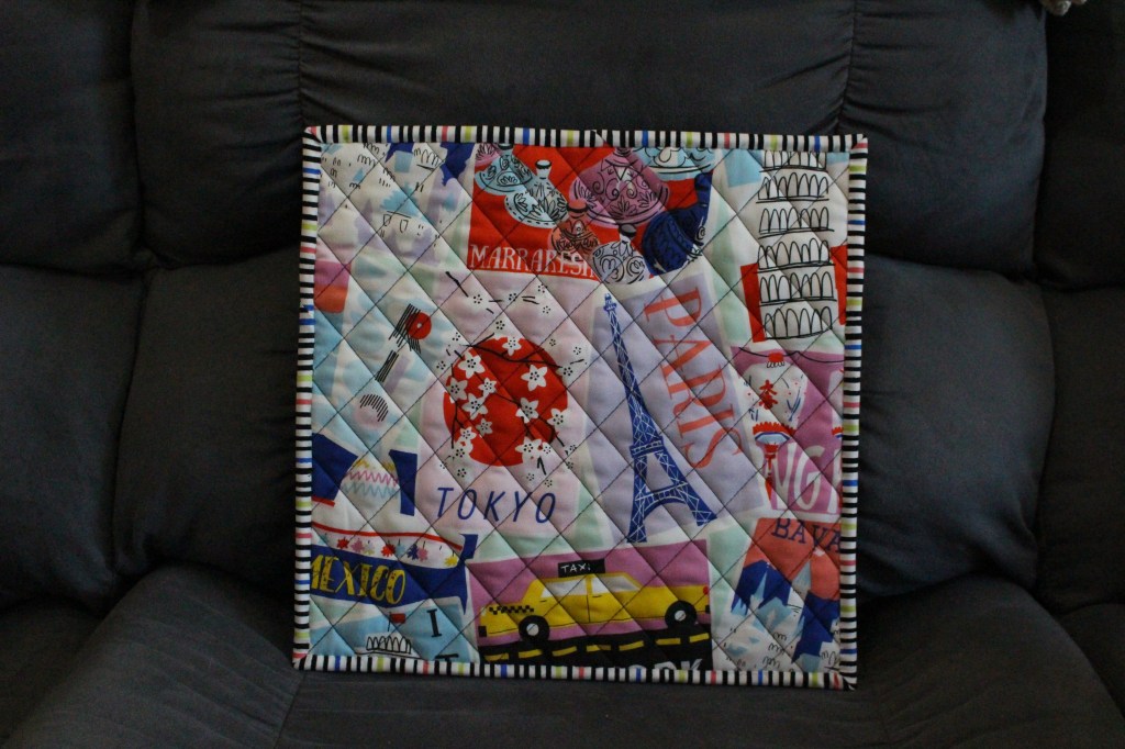 This is the back of the bags. I never have any idea what my bags will look like. They are all a surprise when I get them. But I know they will be beautiful and very well made. Kristine has a knack for putting prints with prints that look amazing together. All of my bags have projects in them. The yellow bag on the right contains my Rainbow Dice project because the colors are so similar.
