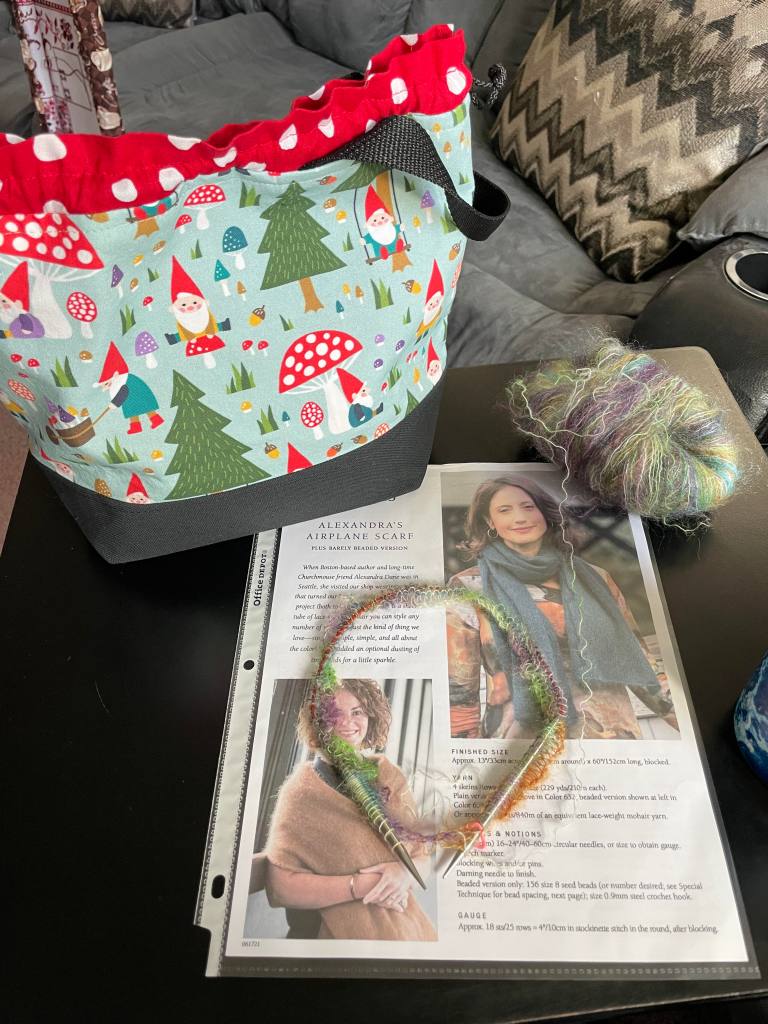 It is a very nice bag and held all the little things we picked up over the weekend.  Right now it is holding my scarf project and it’s perfect.